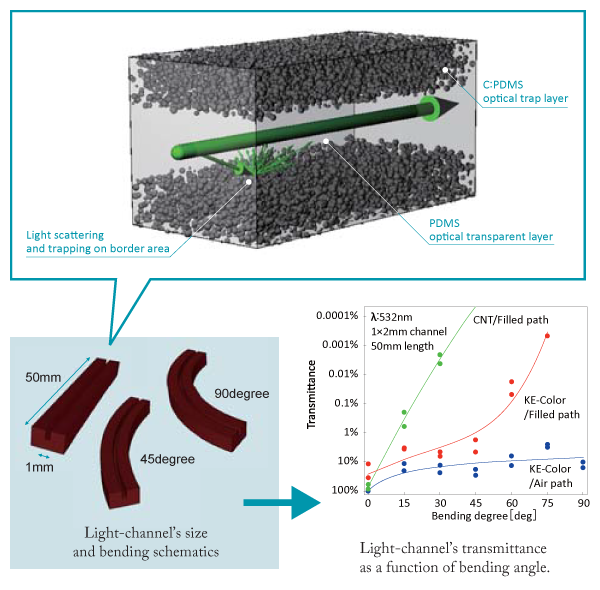 ● C:PDMS tube and PDMS-filled light channel covered with C:PDMS were investigated.