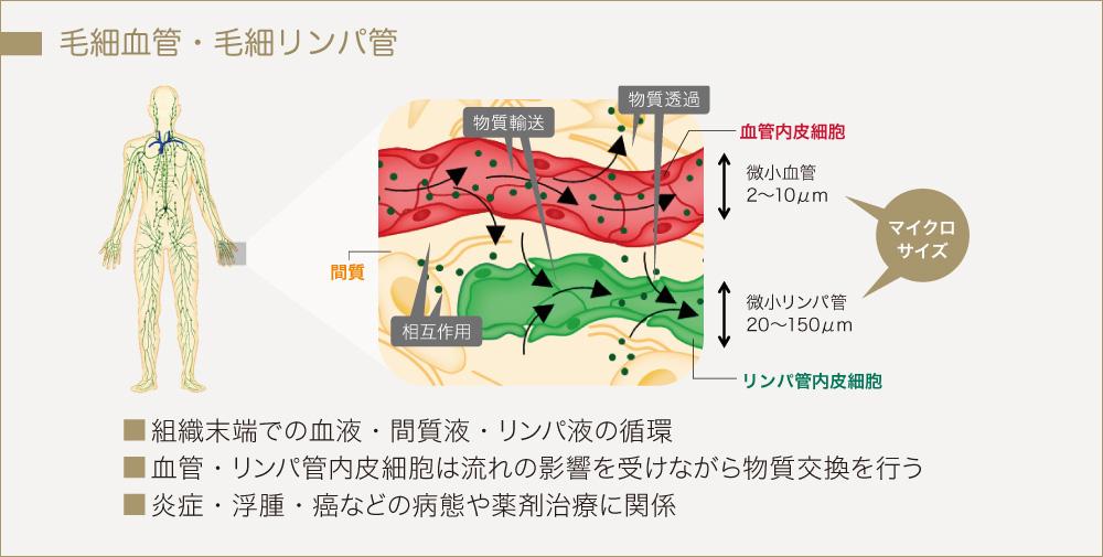 「血管・リンパ管細胞共培養」「マイクロサイズ」「流れ刺激の負荷」「物質透過」を実現するデバイス開発