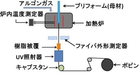 キャピラリ法によって製造したプリフォームを用い、図1に示す線引き装置によりPCFの線引き実験を行った。送出速度、引取速度など各線引き条件を変更し、完成したPCFの空孔の形状を評価した。現段階では、ファイバ径125µmにおいて合同な円形の空孔を持つPCFの製造を目標とし実験を行った。