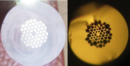 図2:PCF(左プリフォームφ21mm 右φ255µm)