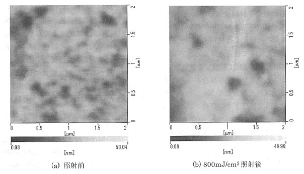 図4:Xeエキシマ光を照射したPDMS表面の表面形状(AFM)