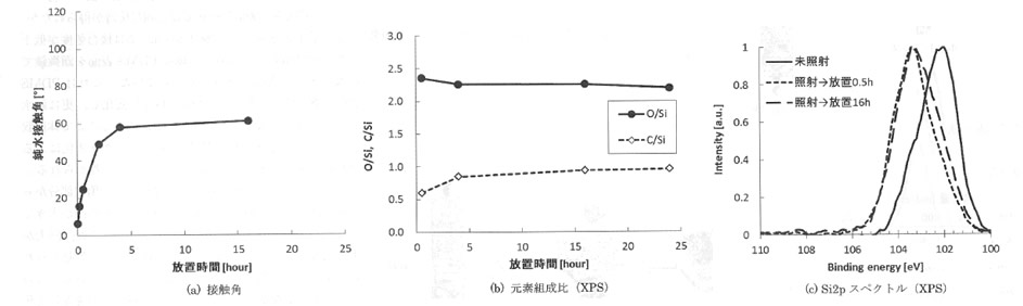 図6:Xeエキシマ光を照射後,CRに放置したPDMS表面の経時変化(Sylgard184)