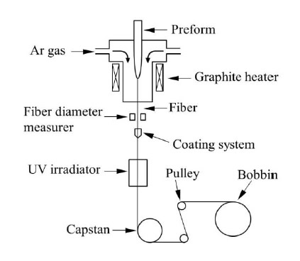 シリカを原料とするプリフォームをキャピラリ積層法によって作製し、Fig.1に示す線引き装置を用いてPCFの線引きを行った。プリフォームの送出速度、PCFの巻取速度、紡糸炉温度を変更し、作製したPCFの端面における空孔の形状を評価した。また、空孔を安定に制御する方法として、線引時、空孔に直接Arガス圧力をかけて空孔径の制御を行う方法(空孔加圧時)と、全キャピラリの開口部を塞いで線引きする方法(空孔封止時)を試み、各方法で得られるファイバ断面形状を比較した。