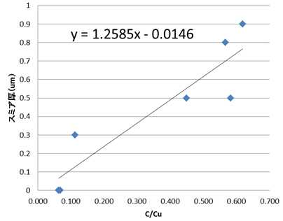 Fig. 6 Relations of C/Cu and smear thickness