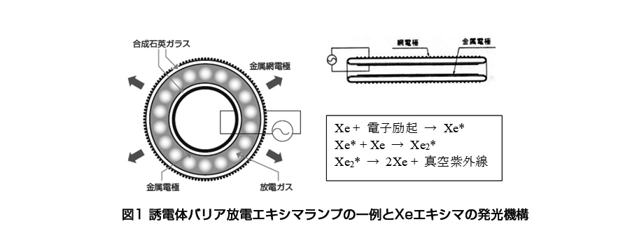 本稿の主題である脱臭処理後の臭気成分の差異は、紫外線式と放電式のオゾン発生原理の違いによる。そこで初めにエキシマランプとそのオゾン発生原理について解説する。