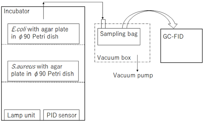 微生物は食品や廃水処理、衛生対策機器の評価など様々な産業で活用されている。微生物を扱う際には培地を用いて増殖させる培養工程が必須であり、その際に臭気が発生する。特にインキュベータは密閉構造のため臭気がこもり、培養完了時に微生物を取り出す際、室内に臭気が拡散し、在室者に不快感を与える。微生物の培養に影響与えることなく脱臭するため、インキュベータ内に真空紫外線を用いた小型脱臭器を入れて大腸菌及び黄色ブドウ球菌を培養し、脱臭器有無による臭気の違いを分析した。ここで、真空紫外線とは、波長が200 nmより短波長の光を指す。