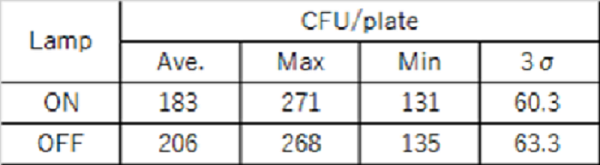 図2に脱臭器有無による微生物生育状況を示す。脱臭器の作動による微生物の生育に影響はなかった。