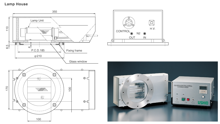 광화학 실험용 엑시머 조사 유닛-헤드온 타입(172, 222 및 308nm)