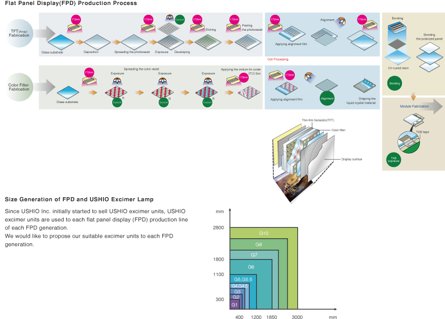 엑시머 VUV 광은 희가스 또는 희가스 수소 화합물을 함유한 램프에 의해 생성된 아주 높은 에너지의 빛입니다. 외부에서 높은 에너지의 전자를 희가스 또는 희가스 수소 화합물을 합유한 램프에 적용하면 강렬한 플라즈마 방출을 생성합니다(유전체 장벽 방전). 이 플라즈마는 높은 에너지의 전자를 함유하며 즉시 소멸되는 것이 특징입니다. 이 플라즈마 방출은 즉시 방출 가스(희가스) 의 원자를 엑시머(Xe) 상태로 여기 시킵니다(높은 에너지의 궤도 원자가 엑시머 여기 분자를 형성). 엑시머-특정 스펙트럼은 원자기 엑시머 상태에서 원래의 상태 (기저 상태) 로 돌아올 때 방출됩니다. 이 방출을 VUV 광이라고 부릅니다.