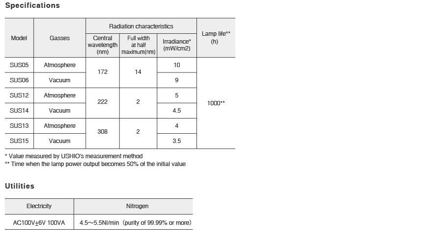 N2의 순도가 낮을 경우 램프 하우징 내의 산소와 오존 농도가 증가합니다. 결과적으로, 방사 발산 강도가 감소되고, 거울에 손상을 주게 되어 램프의 사용 수명을 짧게 만듭니다.