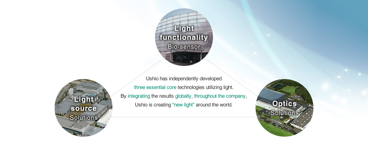 우시오의 광기술 및 R&D 조직 R&D organization and centers 광기술 광원기술 (English) 프로젝션 리소그래피 기술 자외선 경화 (UV Curing) 기술 광 가열 기술 전력 공급기술 (English)