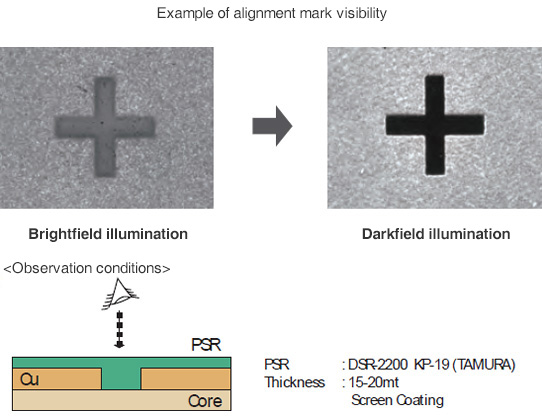 2. 마스크 너머로 관찰하기 때문에 콘트라스트의 저하가 없어 선명한 마크로 얼라인먼트가 가능.