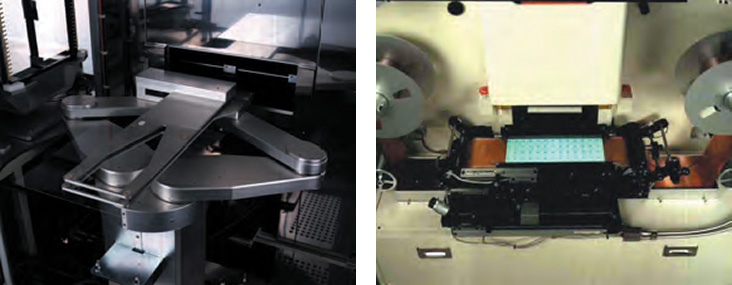 실리콘 웨이퍼, 평면 기판, 프린트 기판 등을 비롯해 다양한 워크에 대응이 가능한 고정밀의 반송계를 갖추고 있습니다.